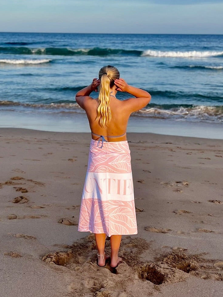 The idea began when we were walking back from the beach and we were frustrated with towels that wouldn't stay put and kept falling down. After plenty of brainstorming, we designed a towel with a simple button-and-hole system, allowing you to adjust and secure it to your liking.