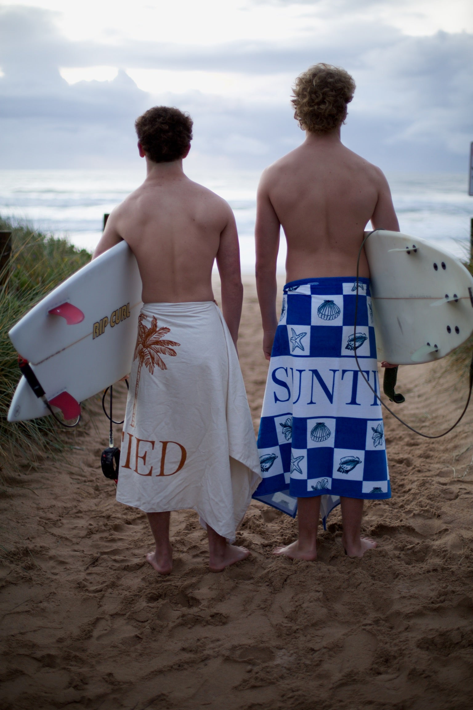 The idea began when we were walking back from the beach and we were frustrated with towels that wouldn't stay put and kept falling down. After plenty of brainstorming, we designed a towel with a simple button-and-hole system, allowing you to adjust and secure it to your liking.