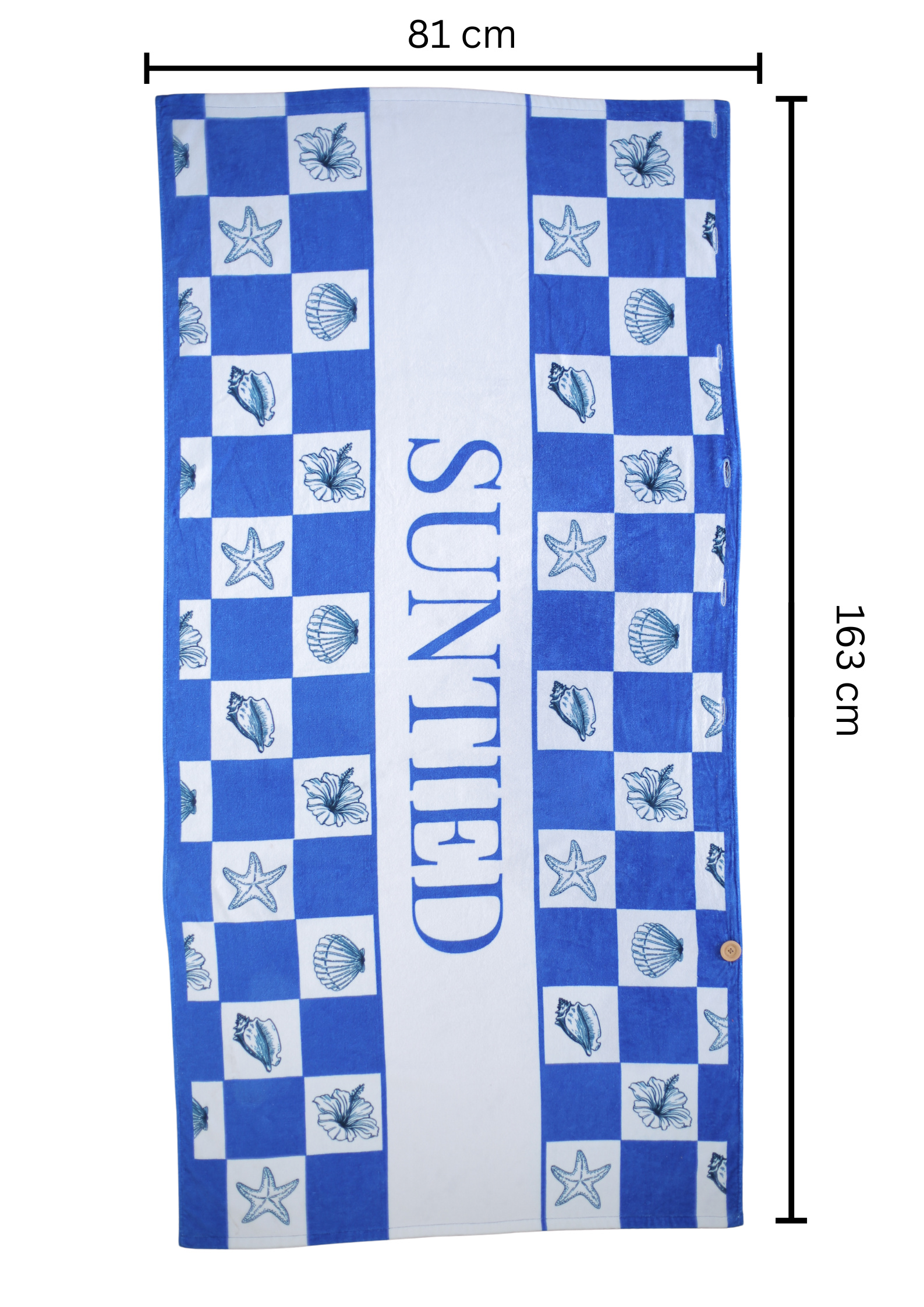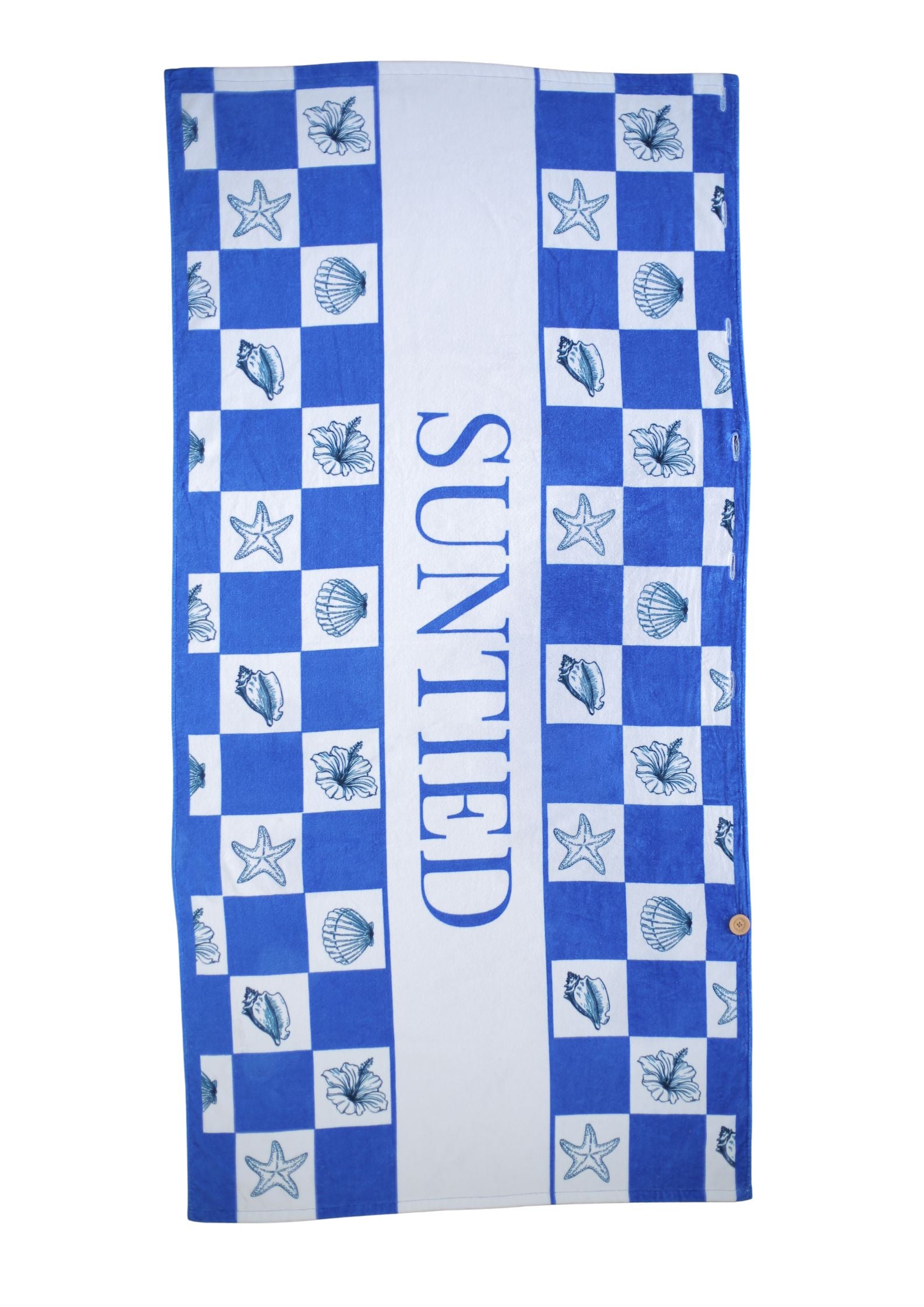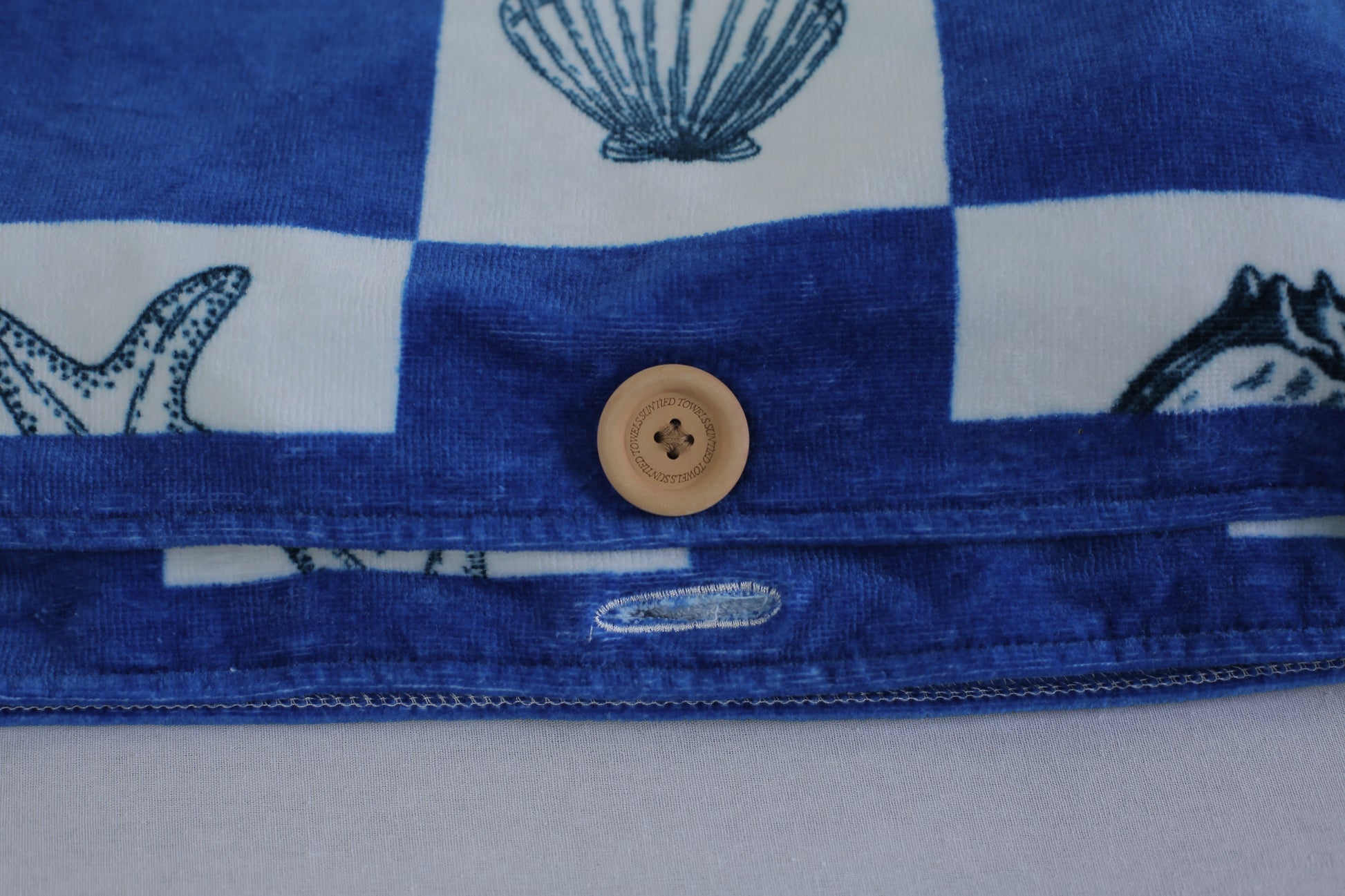 Our buttons work by wrapping the towel around yourself, either around your waist or shoulders, then finding the right size and fit for your body and gently putting the button through the hole.